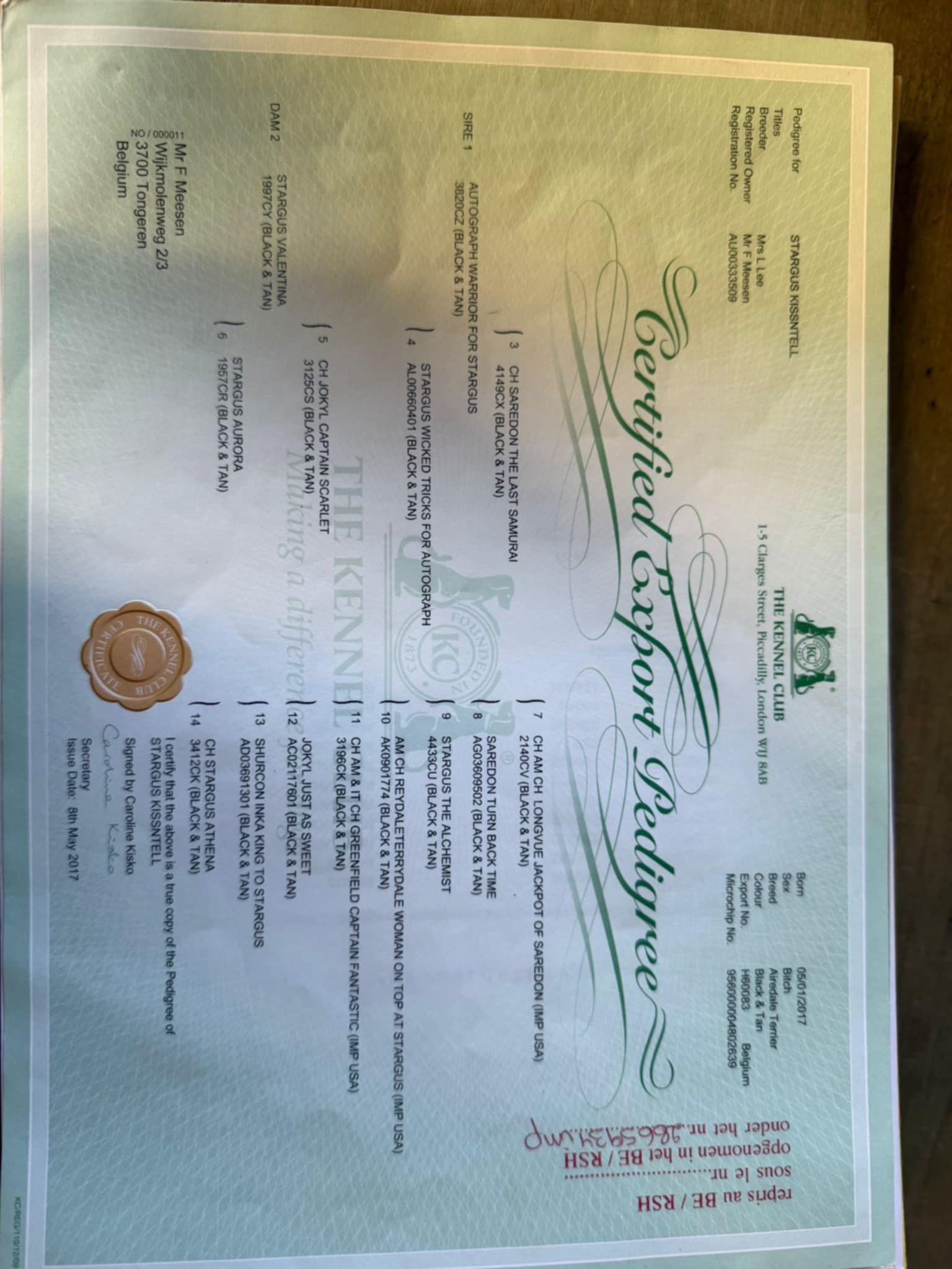Kate is in Essex nabij Londen geboren bij de Familie Lee welbekende Starguss Kennel,